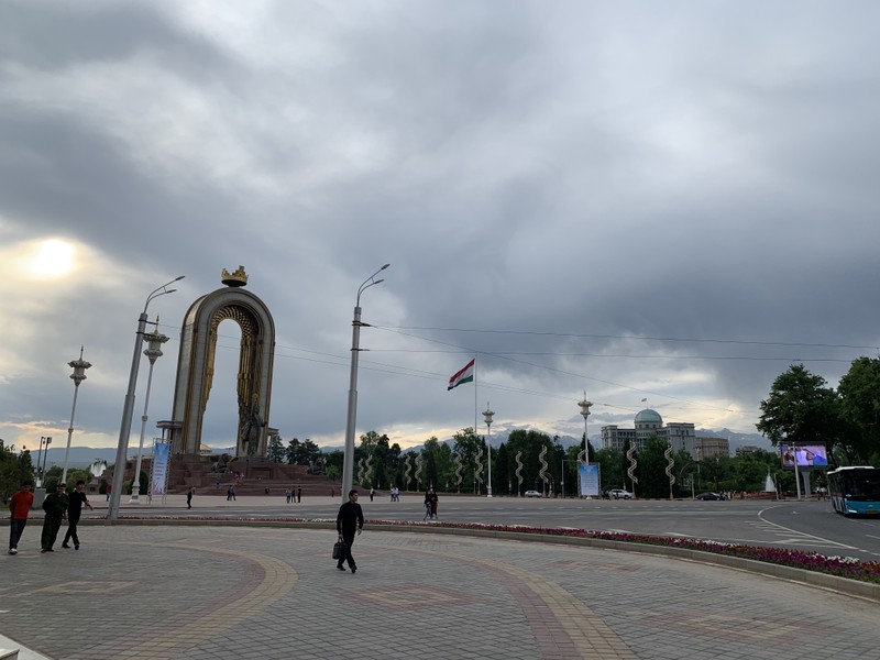 - После пройдёмся по аллее Рудаки, посмотрим на Академию наук Таджикистана, здание Душанбе Плаза и дойдём до памятника Исмоили Сомони — основоположника нашего государства.