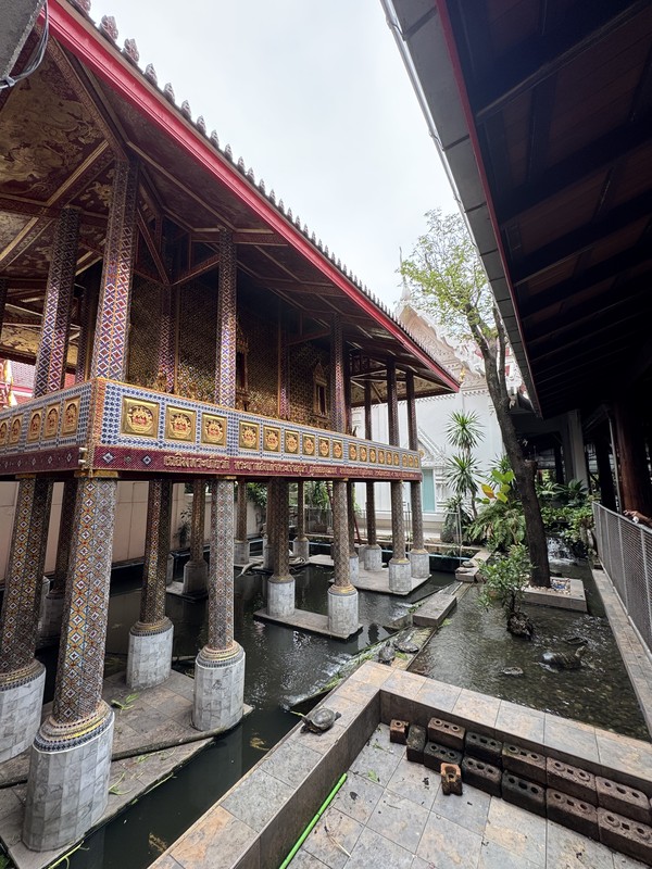 Затем отправитесь в мини-путешествие по водным каналам Бангкока. Во время неспешной прогулки по реке увидите старинные тайские домики на сваях, а также варанов, карпов и узнаете, как живёт город у воды. При желании можно покормить рыб.