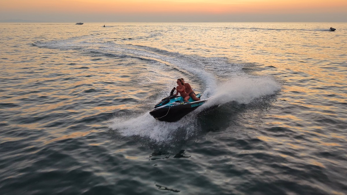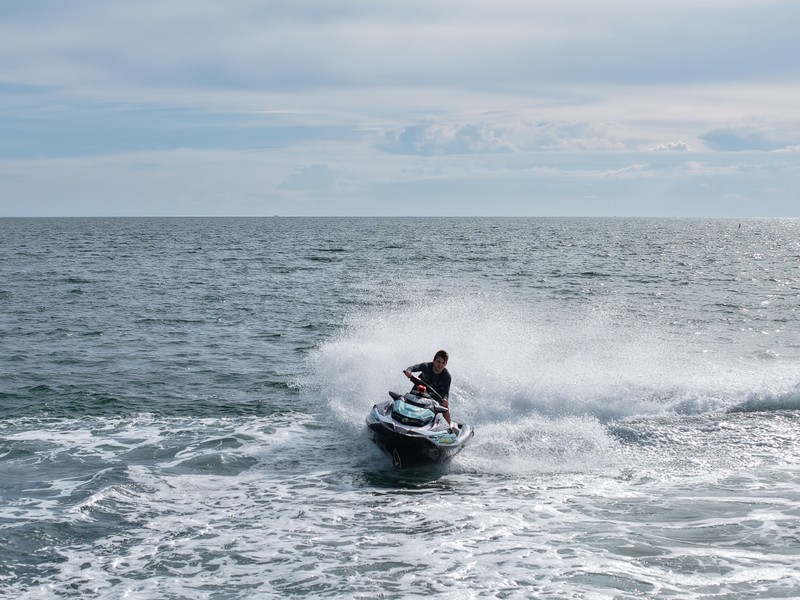 - На гидроцикле вы катаетесь самостоятельно. Ограничение зоны катания — примерно 1 км от пляжа