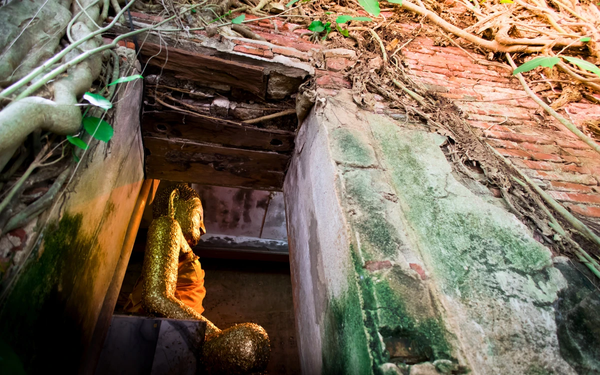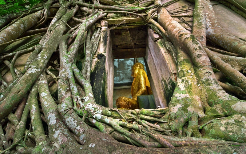 7:00 — храм Ват Баан Кунг и школа тайского бокса. Обряд на удачу, осмотр фресок и корней деревьев, поглотивших строение