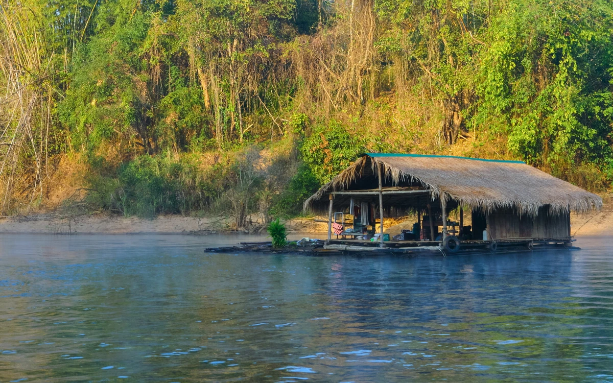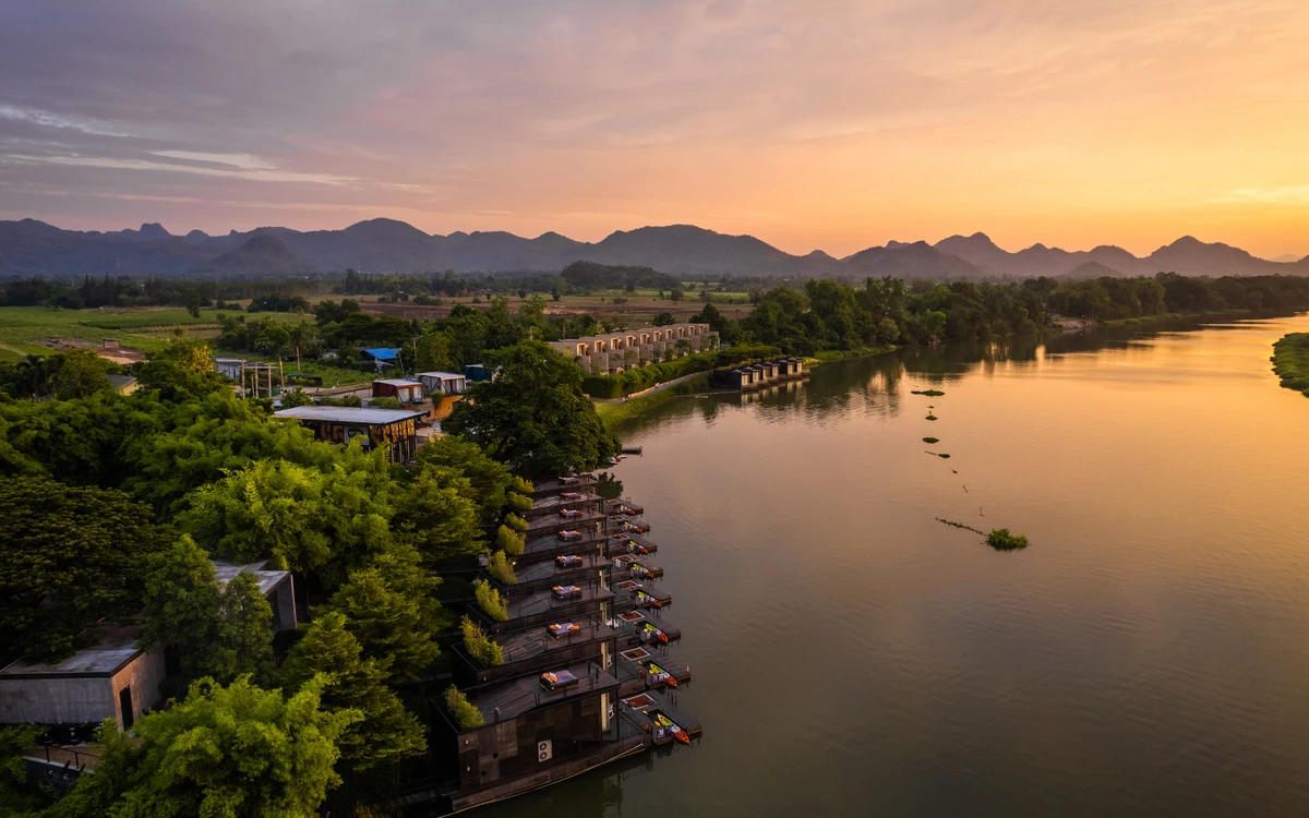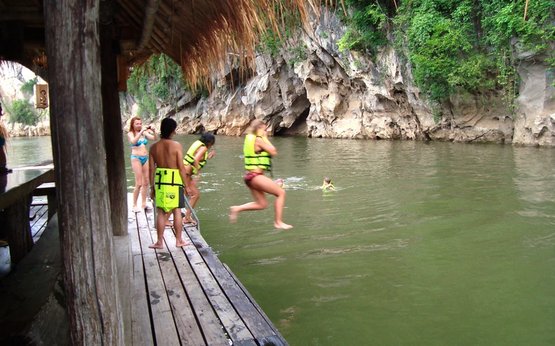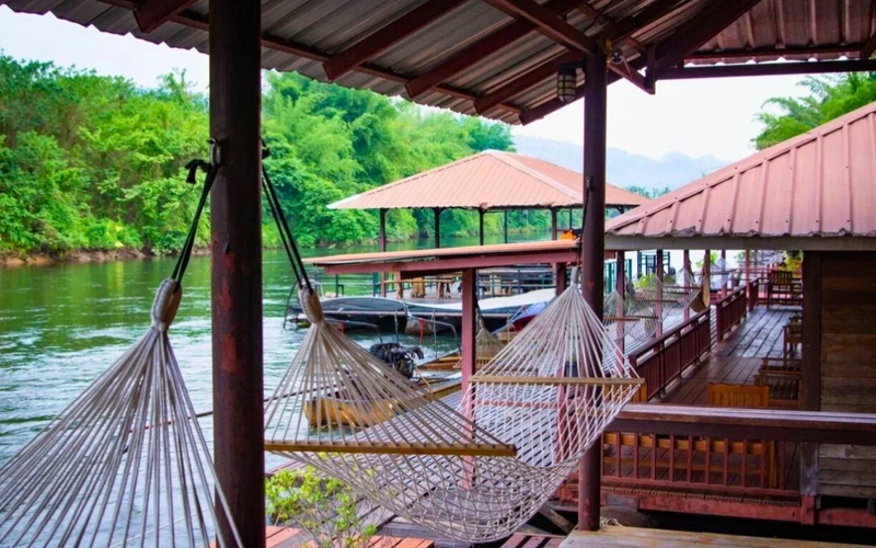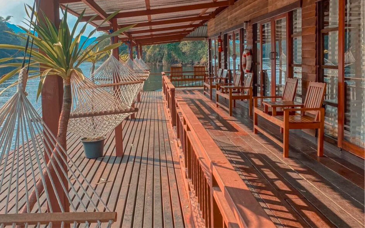 17:00 — сплав по реке Квай. Комфортный плот с местами для отдыха, столами и качелями