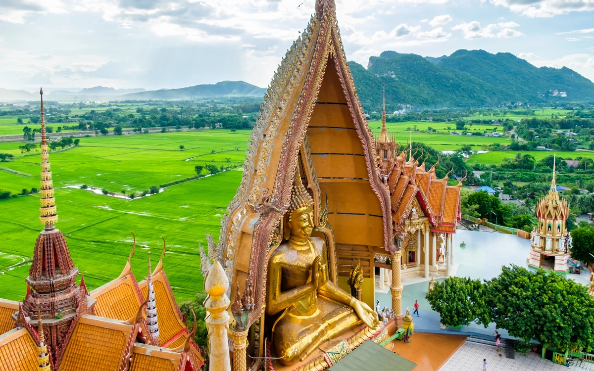 12:00 — храм Ват Там Сыа. Восхождение, осмотр статуи Будды и нетленного тела монаха, ритуал повязывания верёвочек на удачу