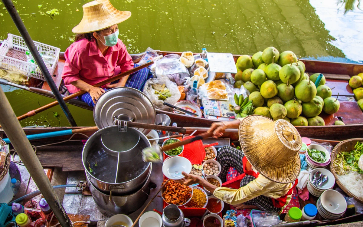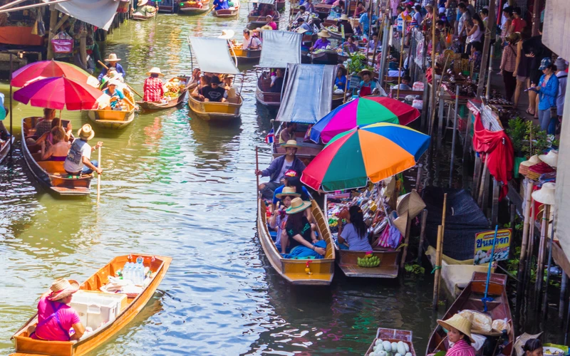 8:00 — плавучая деревня Дамноен Садуак. Катание на длиннохвостых лодках по живописным каналам