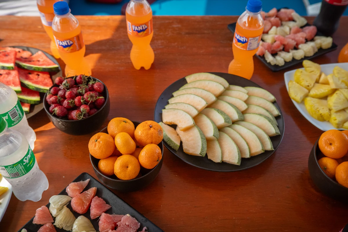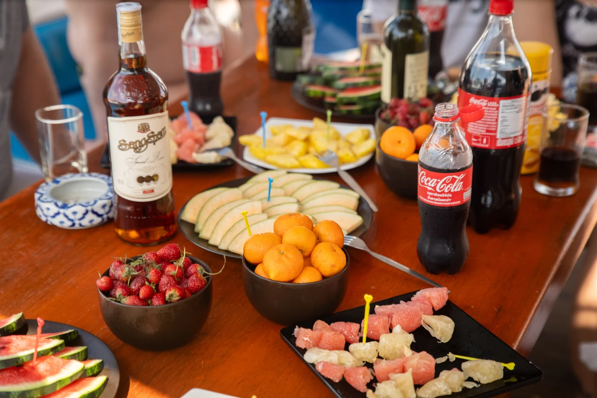 В стоимость входит: входной билет в яхт-клуб, прохладительные напитки, фруктовый стол, страховка, маски и трубки для снорклинга