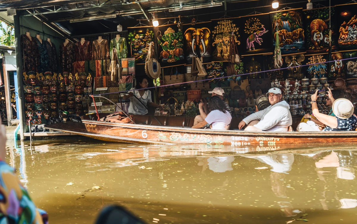 9:15–9:50 — плавучая деревня Ван Ди (канал Меклонг). Прогулка на традиционных лодках, знакомство с бытом местных жителей