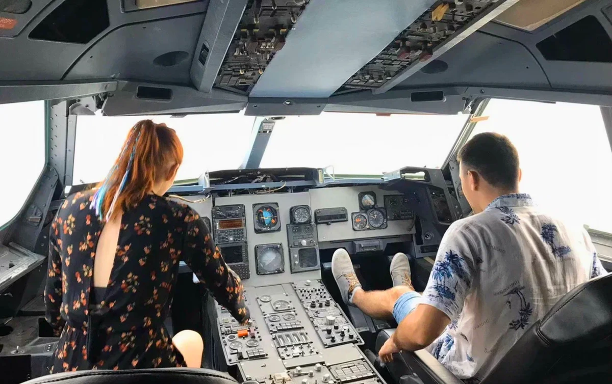Арт-кафе в салоне авиалайнера. Здесь можно не только сфотографироваться за штурвалом Боинга, но и увидеть коллекцию военной техники