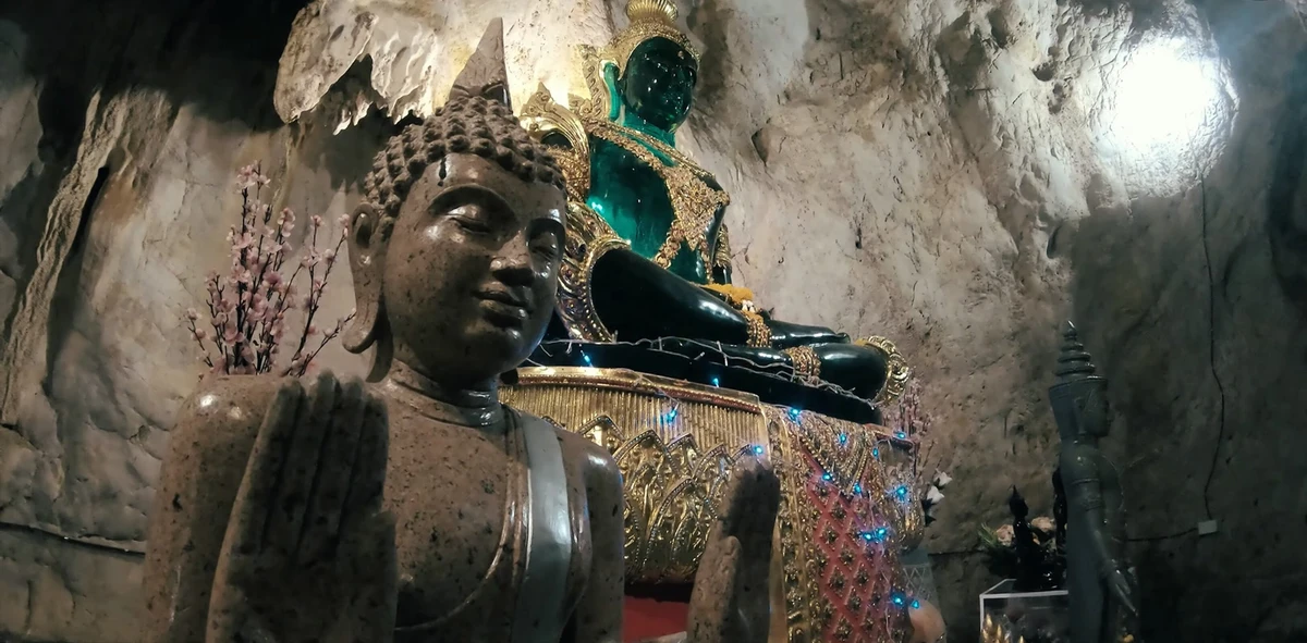 " Наша поездка ведёт к крохотному плато, где раньше жили отшельники. Через пещерный храм с подземным тоннелем мы попадём в тенистый оазис, окружённый горами. Ещё вы увидите мистический монастырь на озере, парк духов, поляну обезьян и гроты. И погрузитесь в спокойствие неизведанной природы. "
