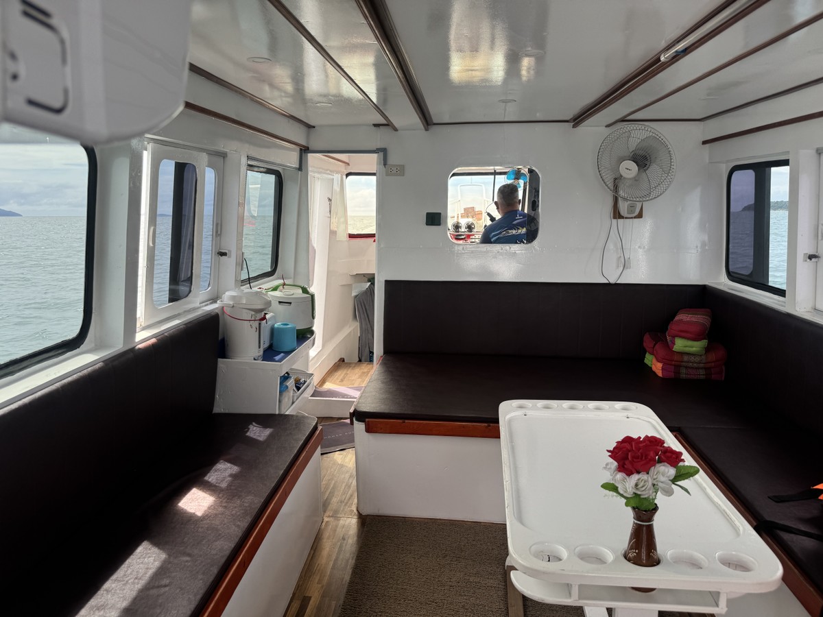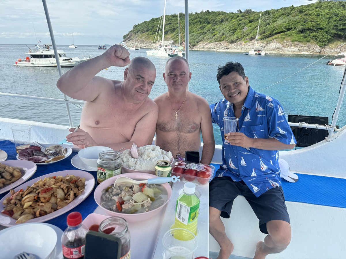 От пирса Чалонг вы отправитесь к одному из красивейших островов в Андаманском море — Рача Яй, или как его ещё называют, Райскому острову. На борту двухпалубного судна вместимостью до 10 человек есть всё необходимое для комфорта в пути: стол и мягкие диваны, тент от солнца, вентилятор и кондиционер. Снасти для рыбалки и инвентарь для снорклинга также будут в вашем распоряжении. Доброжелательная команда состоит из трёх человек: капитан и два матроса. Они возьмут на себя все вопросы, связанные с безопасностью, будут помогать вам во время рыбалки, а затем приготовят ваш улов.