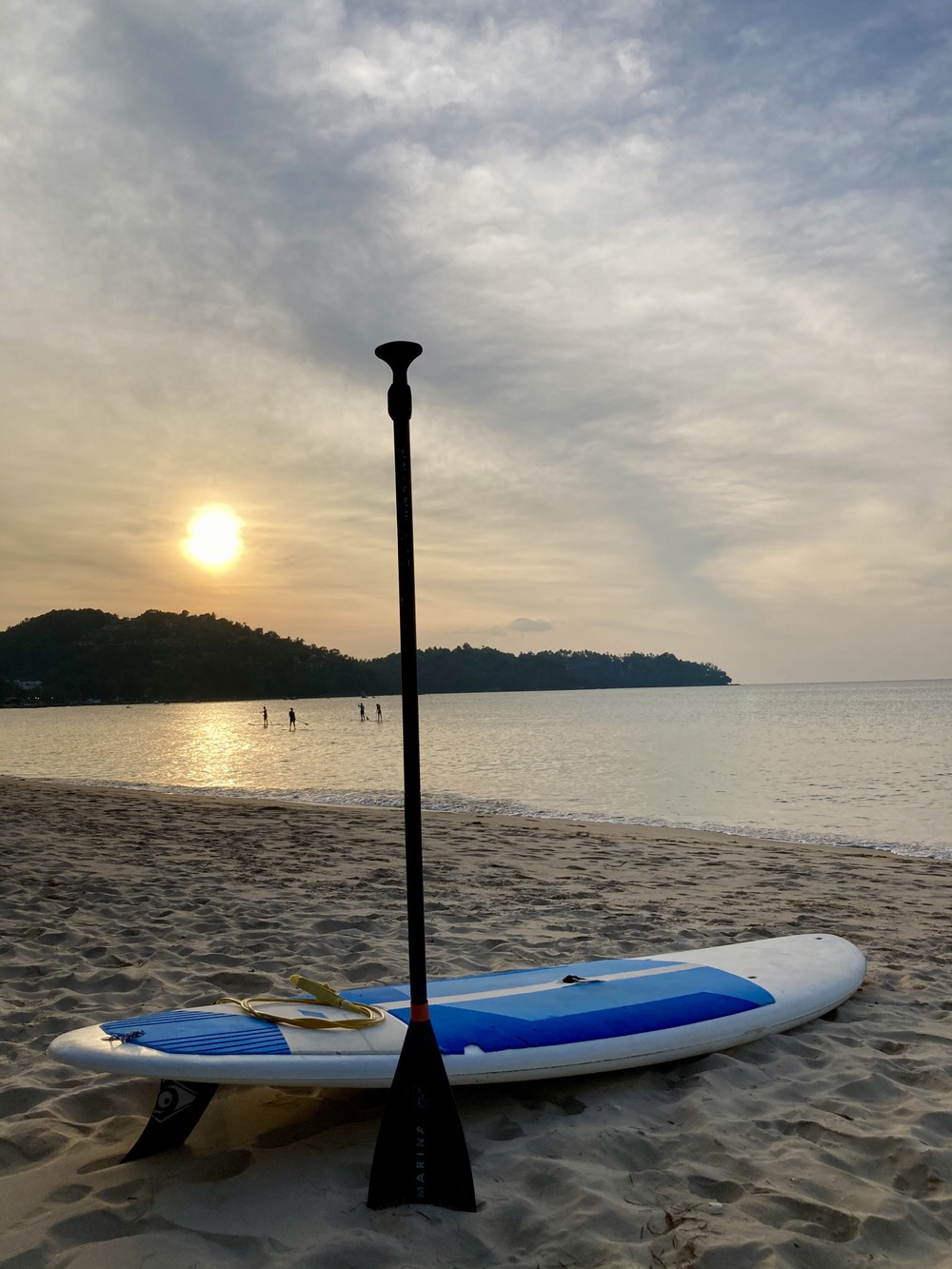 На живописном пляже Банг Тао вы сделаете первый шаг на доску. Вместе с опытным инструктором научитесь уверенно стоять на сапборде, держать баланс и скользить по глади океана — спокойно, в своём ритме.