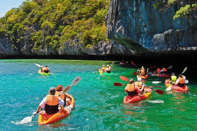Всего 45 минут на скоростном катере — и вы на острове Вау, где вас ждет снорклинг на коралловом рифе. С маской и трубкой вы окунетесь в волшебный подводный мир и увидите рыб-попугаев, морских ежей, скатов, неонов и других чудесных морских обитателей. Далее посетите остров Вуа Талап, знаменитый золотистым пляжем, первозданной природой и дикими обезьянами. Вы подниметесь на смотровую площадку и насладитесь потрясающей панорамой островов национального парка. А еще прокатитесь на каяках вдоль живописных бухт, скалистых гротов и диких пляжей. После вкусного обеда сможете перевести дух и отдохнуть на пляже или посетить пещеру Лотосов с уникальными сталактитами и сталагмитами.