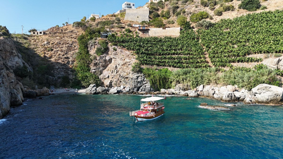 - Затем продолжим прогулку вдоль побережья. С воды вы увидите живописные бухты и банановые плантации Газипаши