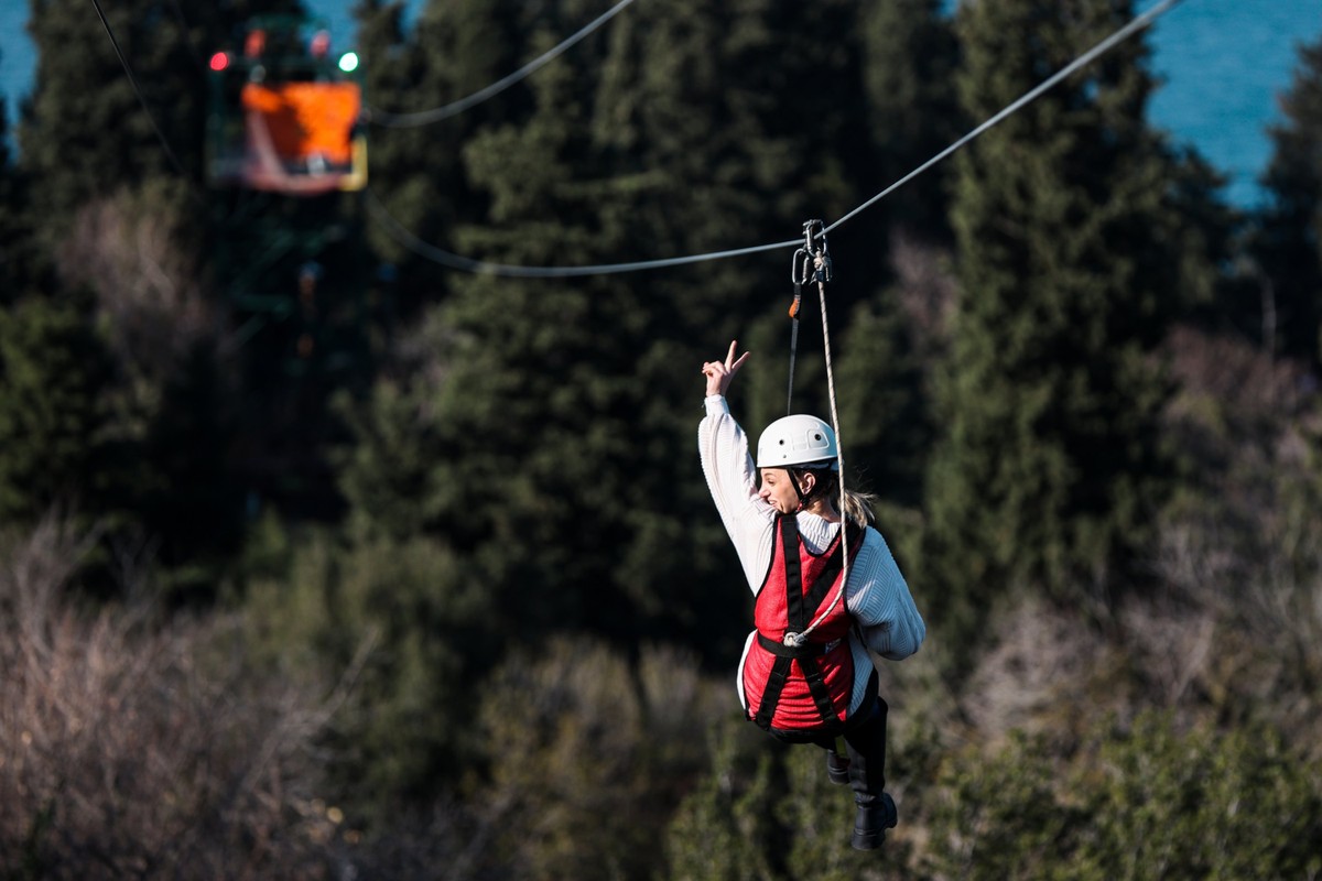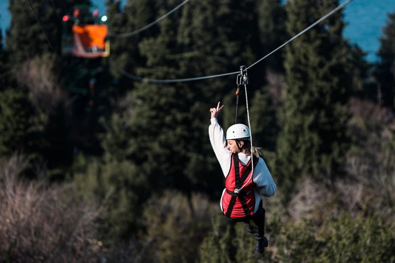 Полёт на зиплайне. Инструкторы помогут подготовиться и наденут всё снаряжение. Несколько десятков секунд свободного скольжения по натянутому тросу подарят мощный выброс адреналина и незабываемые виды.