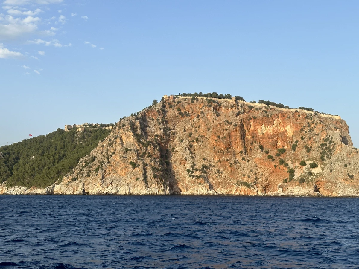 Красная башня (Kızıl Kule). Отправление от исторической гавани Аланьи. Знакомство с командой, выход в море, начало путешествия вдоль крепостных стен.