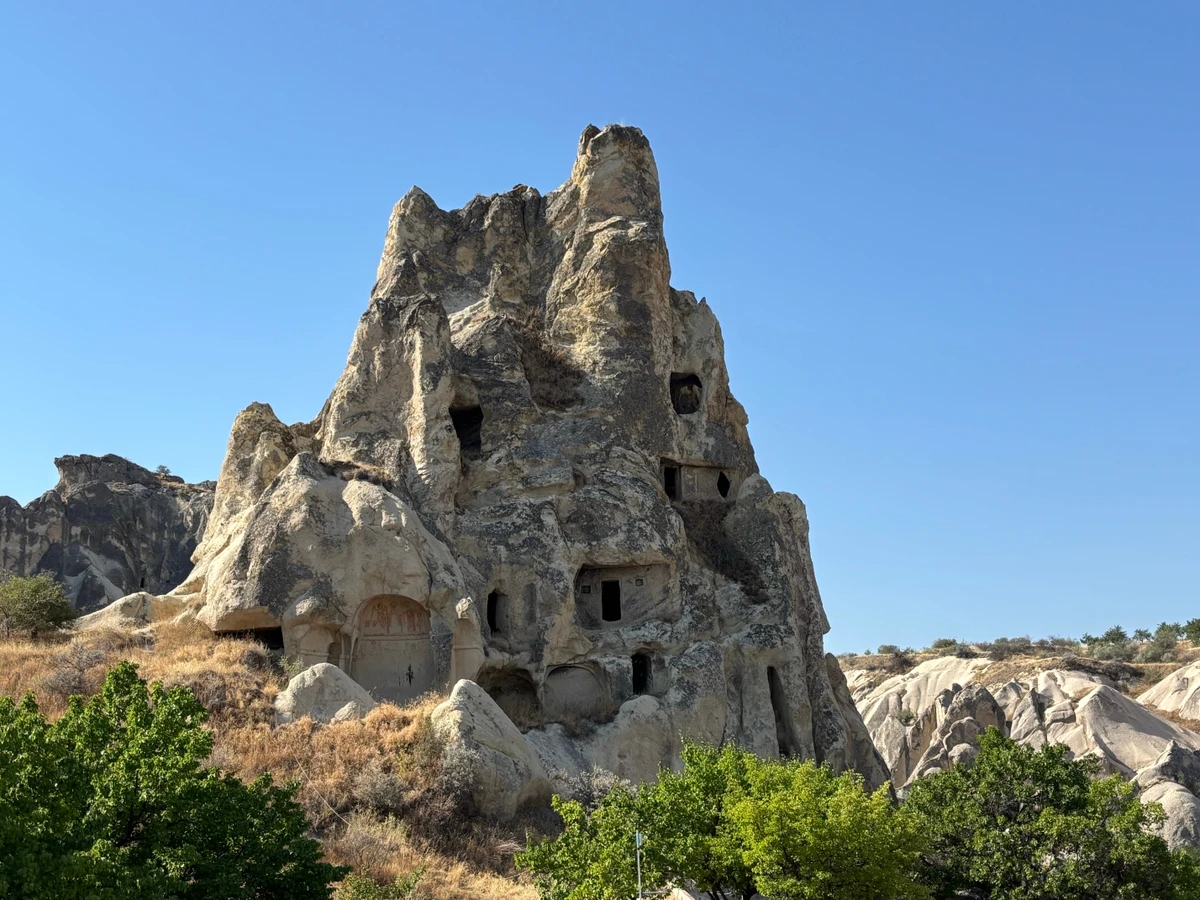 " Погрузитесь в волшебный мир Каппадокии! В первый день вас ждут пещерные города и церкви, панорамные виды на долину Гёреме, замки Учхисар и Ортахисар. Вечером — проживание в аутентичном туфовом отеле и по желанию — шоу с живой музыкой и кружащимися дервишами. А на второй день — воздушные шары и завораживающие долины Деврент и Аванос. "