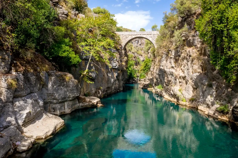 10:00–11:00 — джип-поездка по горным тропам Тавра до смотровой площадки каньона и исторического моста Олук и сплав по горной реке Бешконак с умеренными порогами (7 км)