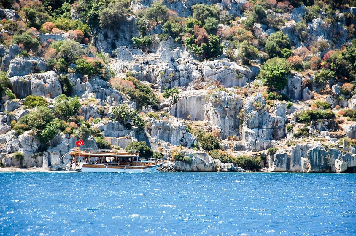 - Затонувший город Кекова. Согласно исследованиям Кекова в древности был частью материка. Однако со временем из-за сильных землетрясений большая часть этого города обрушилась, а вторая превратилась в остров. Сейчас это место называют «Атлантидой Турции», и мы отправимся исследовать её на яхте.
