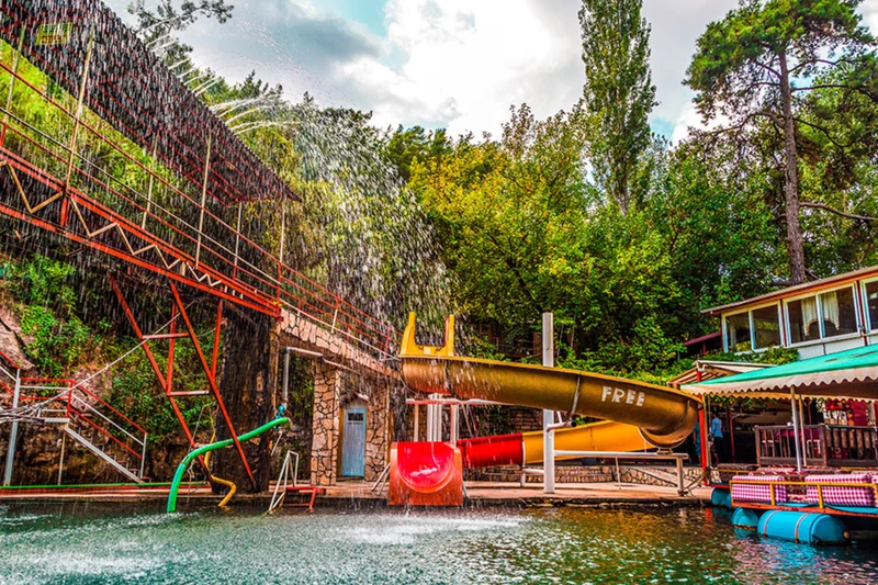Наша следующая точка — река Дим. Это зелёный оазис, где природа берёт верх над суетой. Мы остановимся на обед в ресторане, построенном прямо над водой: за столом можно погружать ноги в прохладную реку. Желающие смогут искупаться или прокатиться с водных горок.