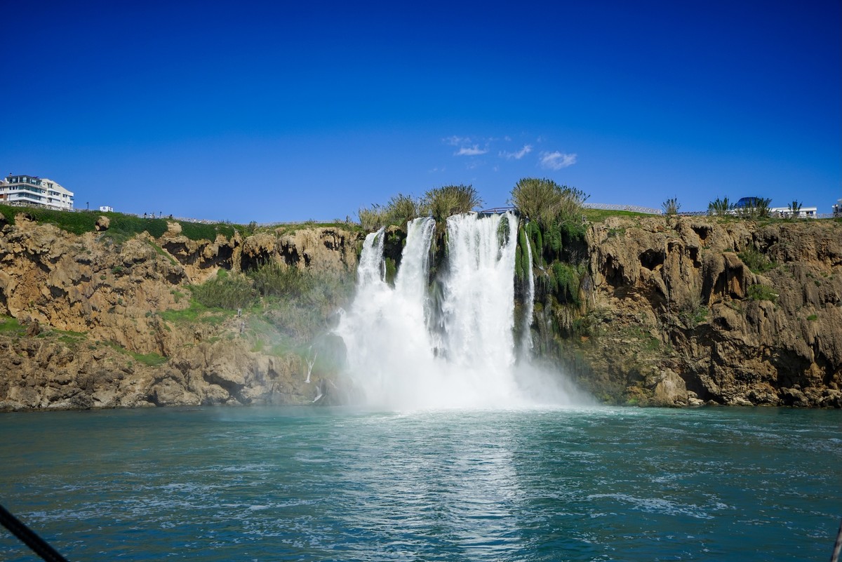 - Мы подойдём максимально близко к водопаду Нижний Дюден — каскаду высотой более 40 метров. Это лучшая точка для фото. Остановка длится от 30 мин. до 1 ч.