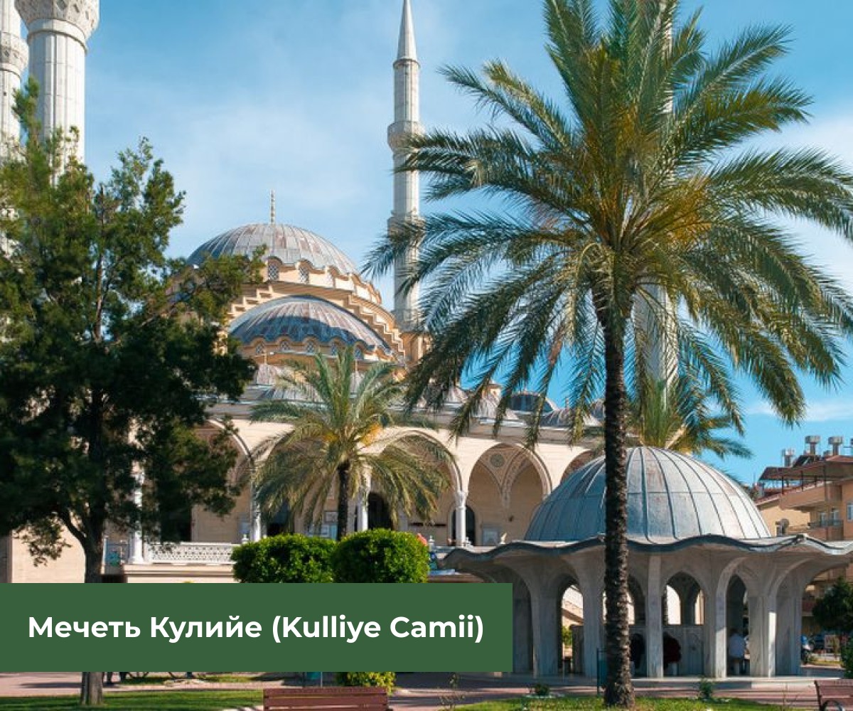 В завершение вы посетите крупнейшую мечеть на побережье Антальи. Рассмотрите стены, пол, потолок и поверхности колонн, покрытые мозаикой и росписью с орнаментами и фразами из Корана. Я расскажу, чем отличается эта мечеть от большинства других мусульманских храмов.