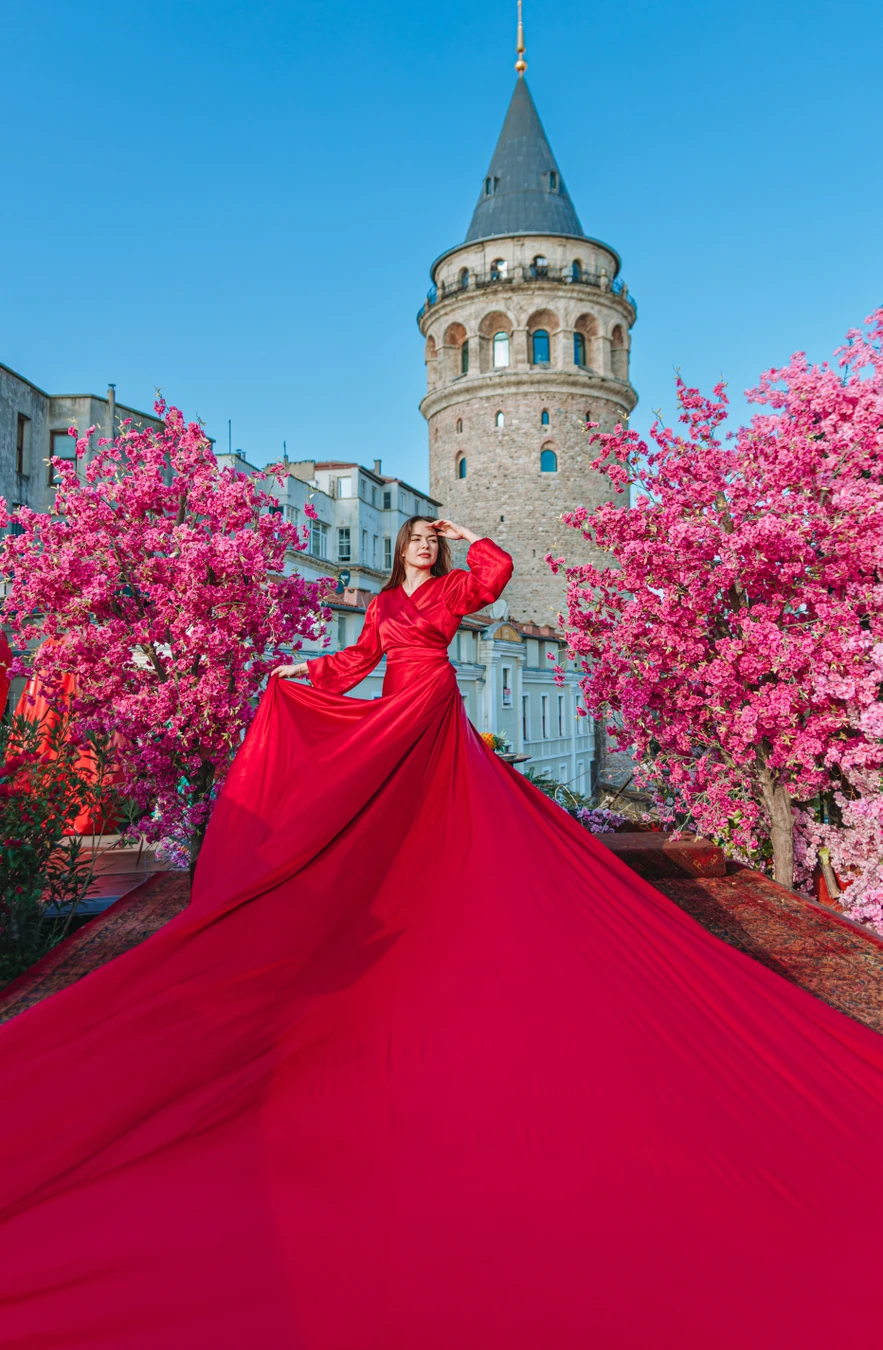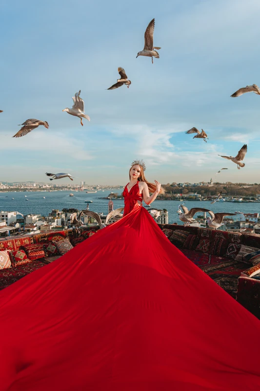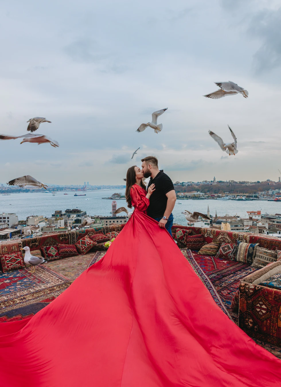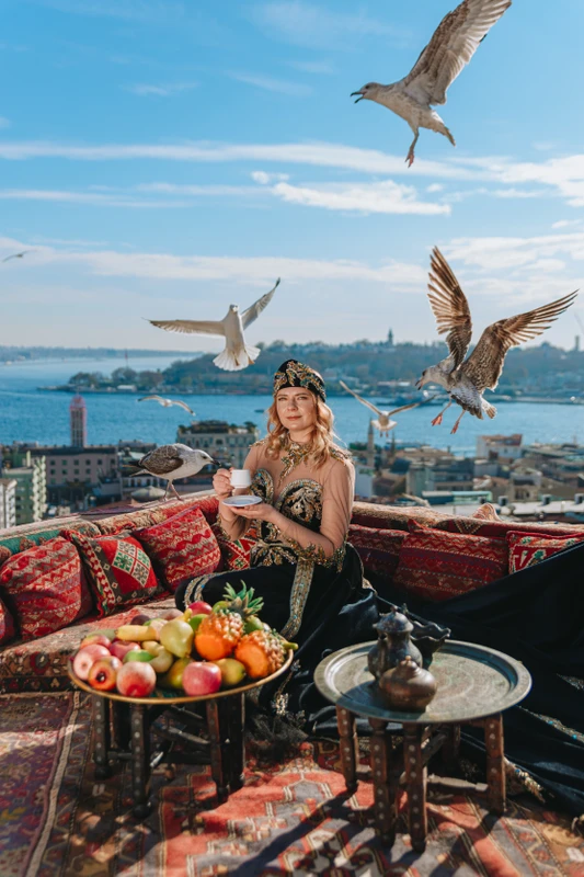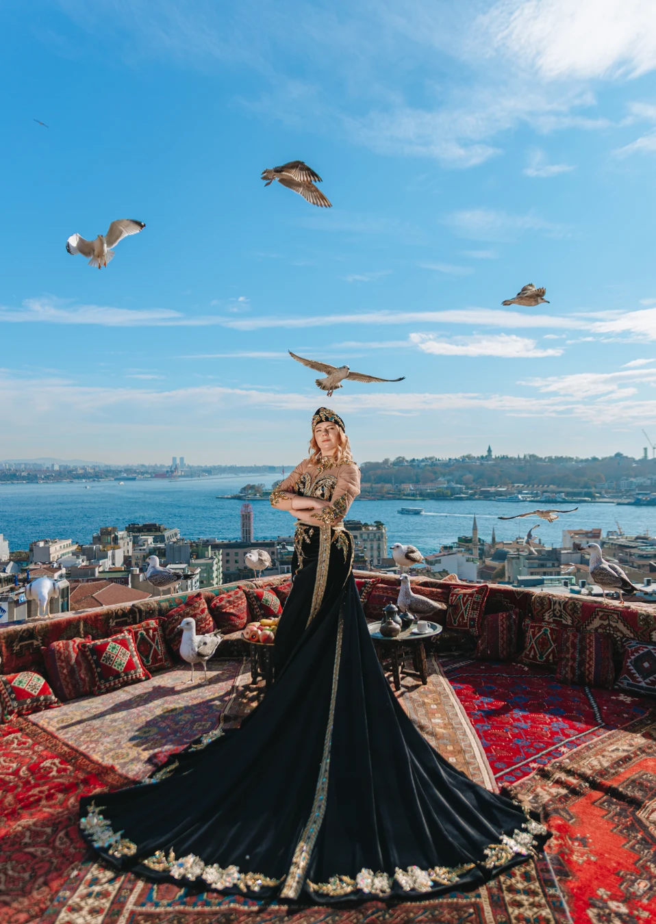 " Мы отправимся туда, где город встречается с небом, а Босфор сияет мягким светом. Вас будут ждать 4 уникальные фотозоны и удивительные наряды — воздушные и летящие, или как у Хюррем Султан, или пышные, как у принцессы. Какой героиней вы станете — выберете сами. А я сохраню на фото ваше необычное свидание со Стамбулом, которое вы запомните навсегда. "