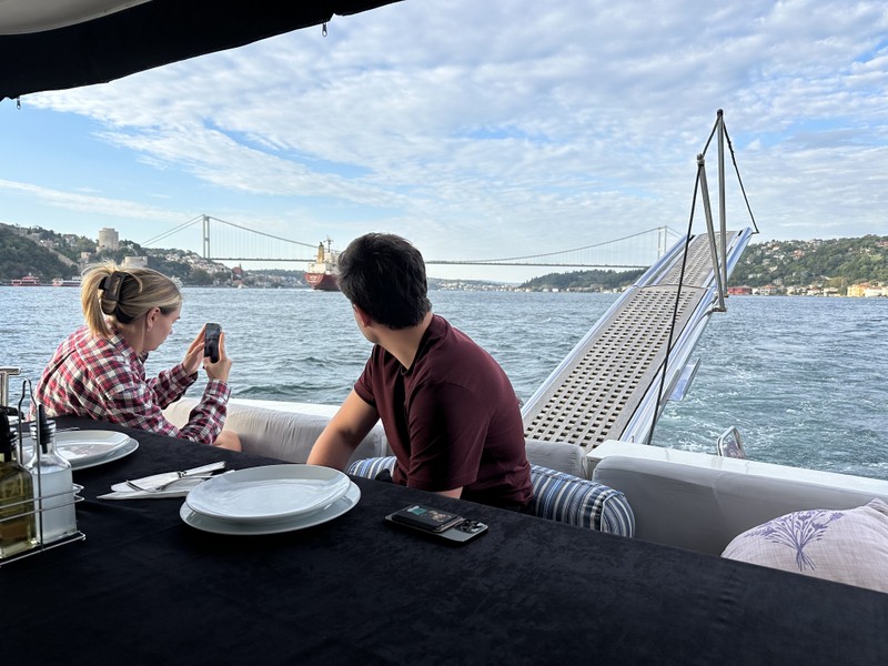Маршрут начинается в аутентичном районе Каракёй. Отсюда яхта плавно выйдет на просторы пролива, и перед вами откроется панорама двух континентов — Европы и Азии, соединённых знаменитыми мостами.