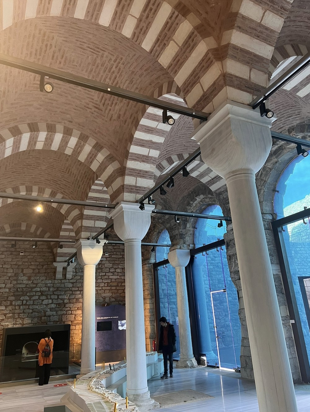 Влахернский Дворец. Это хорошо сохранившаяся византийская постройка из красного кирпича и белого мрамора. Дворец сильно пострадал во время османских завоеваний и не раз менял предназначение, о чём я расскажу. Сейчас здесь работает музей, где вы увидите старинные предметы быта и искусства и узнаете о древних ремеслах. А еще поднимемся на крышу и полюбуемся городом со смотровой площадки.