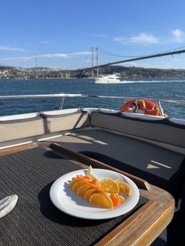 На борту для вас — турецкий чай, кофе, вода. Также вы можете принести свои фрукты, закуски и шампанское.