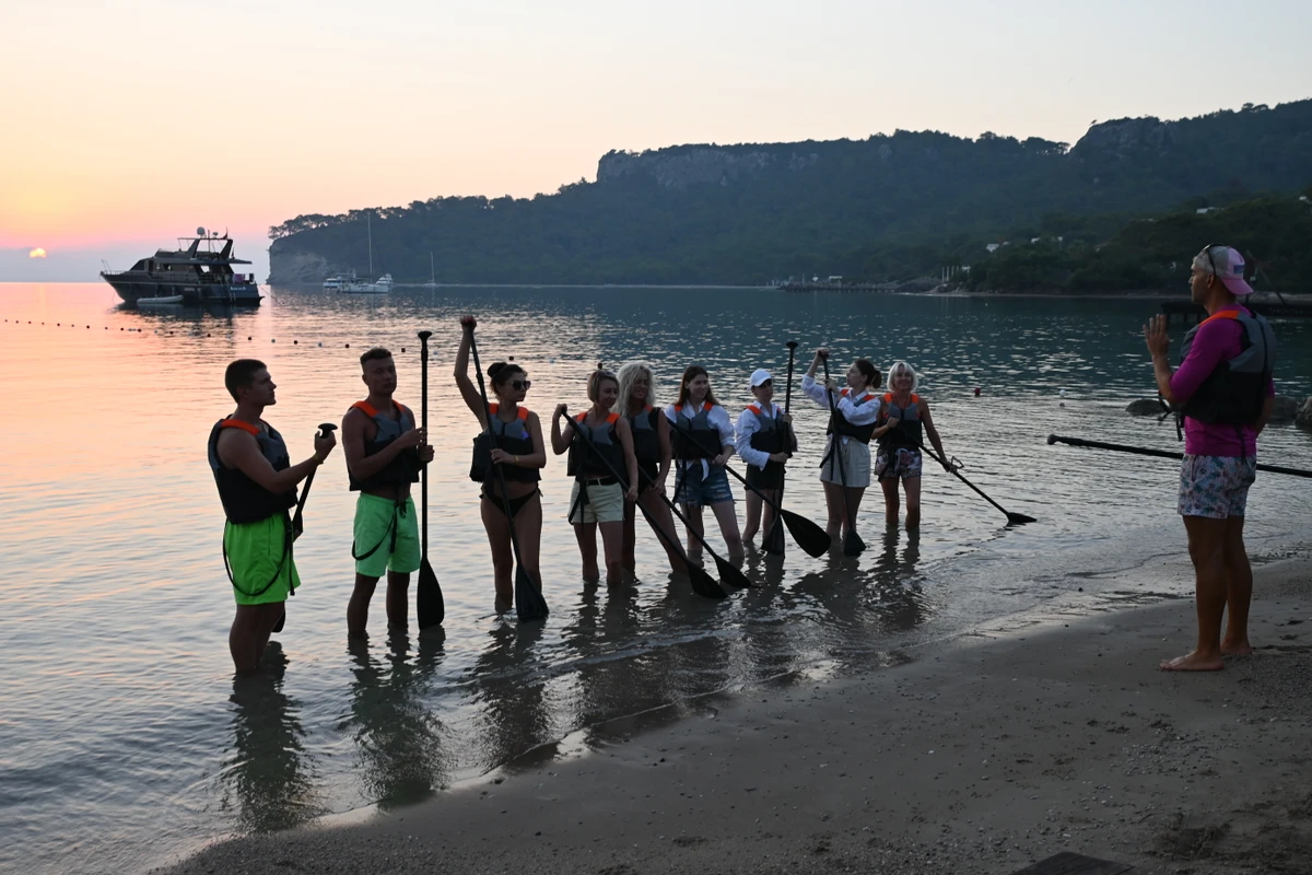 " Покататься на сапах по живописному побережью Кемера, искупаться в чистейшей воде и заглянуть на дикие пляжи — вас ждёт активная прогулка с остановками и отдыхом. Понравится и опытным сап-бордистам, и тем, кто ещё ни разу не катался. "