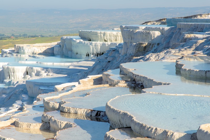 Гирокоптер может подняться на высоту до 500 м. Но для того, чтобы рассмотреть Памуккале получше, мы поднимемся на 200 м — и вы полюбуетесь знаменитыми травертинами с бирюзовой водой, амфитеатром Иераполиса и популярным термальным источником — бассейном Клеопатры.