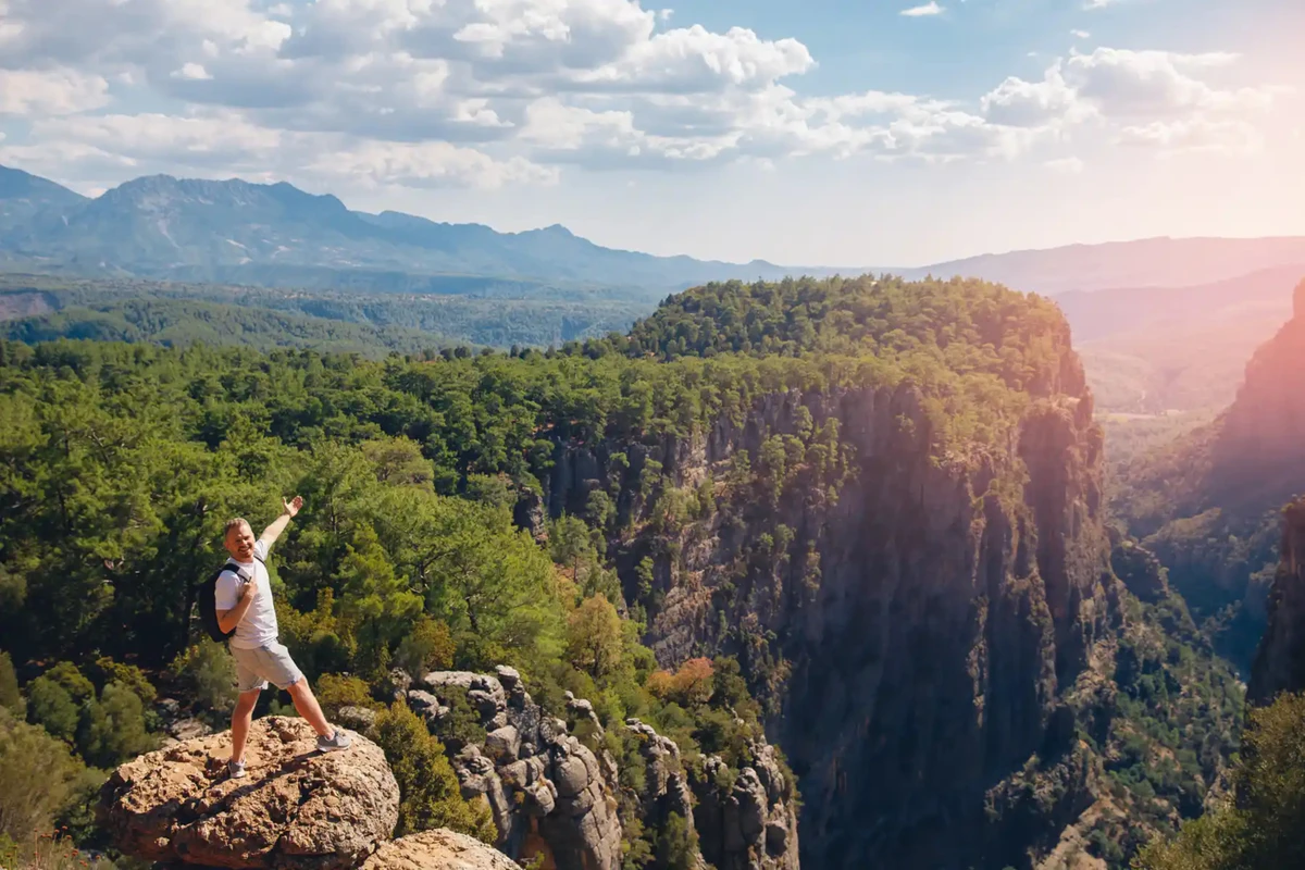 10:00–11:00 — джип-поездка по горным тропам Тавра до смотровой площадки каньона и исторического моста Олук и сплав по горной реке Бешконак с умеренными порогами (7 км)