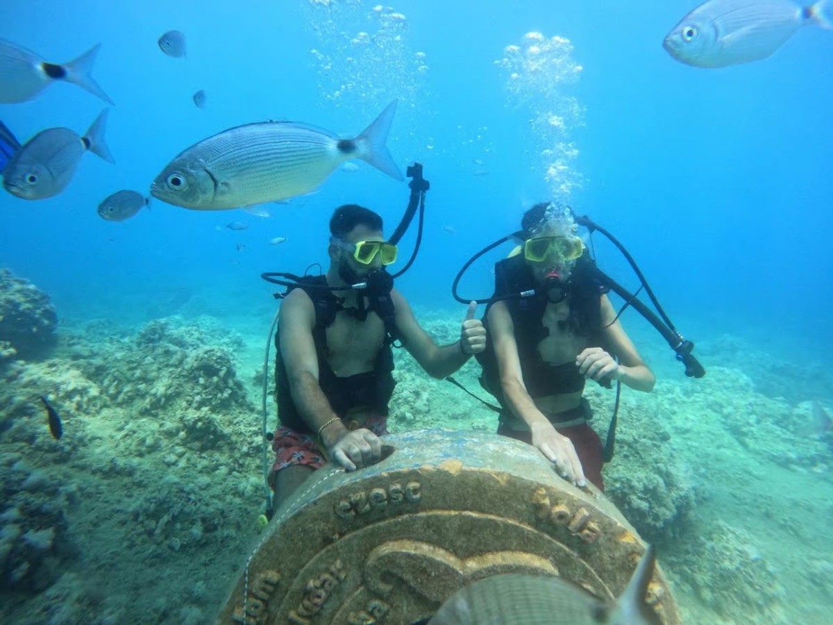 " Предлагаем вам совершить два погружения — и рассмотреть подводный музей с рифами, затонувшими кораблями и морскими обитателями. Рядом с начинающими всегда будут опытные инструкторы, а сертифицированные дайверы смогут нырять глубже и более самостоятельно. "