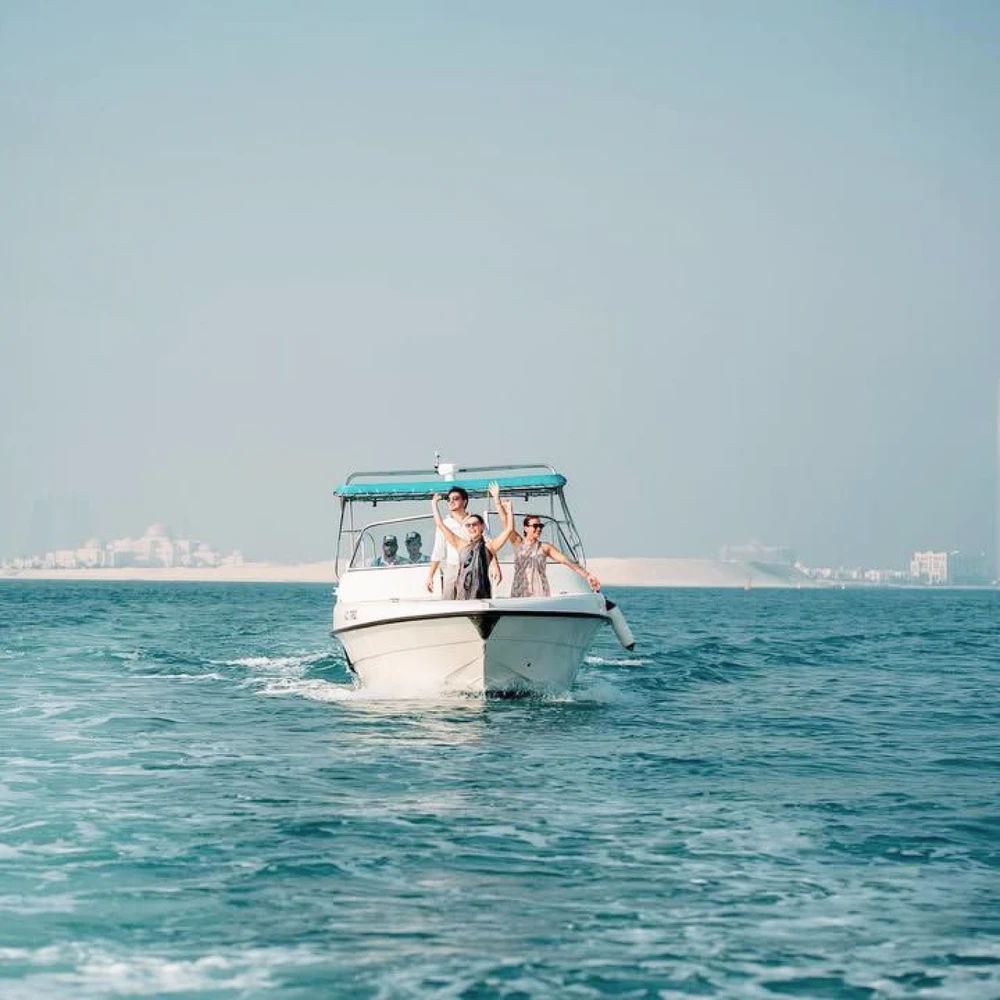 " Каждый из островов Абу-Даби отличается своей уникальной атмосферой — давайте полюбуемся ими с борта скоростной лодки и попробуем поймать их настроение. А на одном из них — Бахрани — сделаем остановку, чтобы искупаться в кристально чистой воде, побродить по мягкому песку, полакомиться закусками и насладиться теплом Эмиратов. "