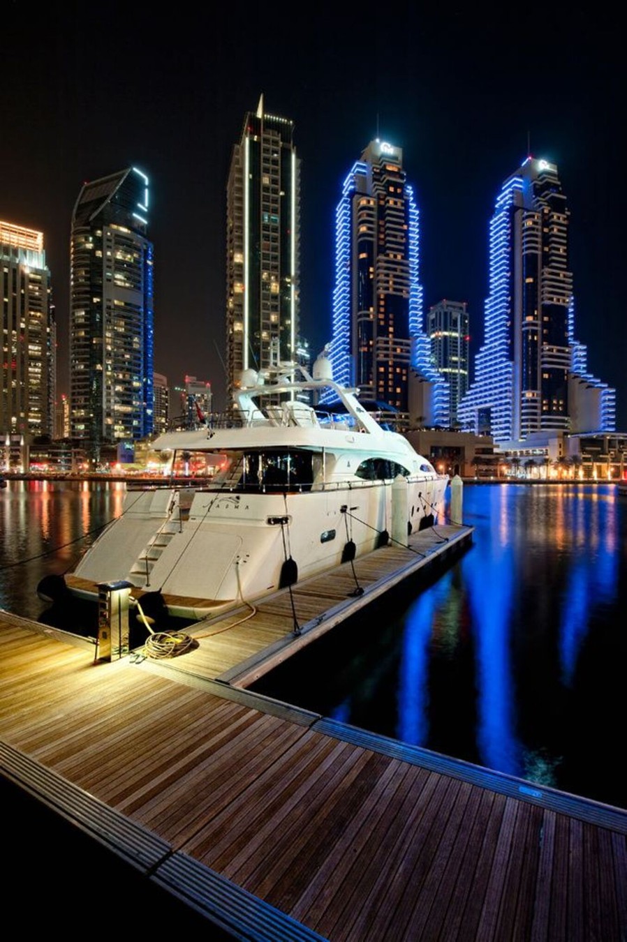 Устроим променад по набережной, где небо отражается в стекле небоскрёбов, а вдоль воды стоят яхты. Разноцветная подсветка зданий превращает район в фильм, в котором вы становитесь главным зрителем.
