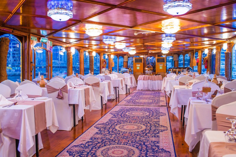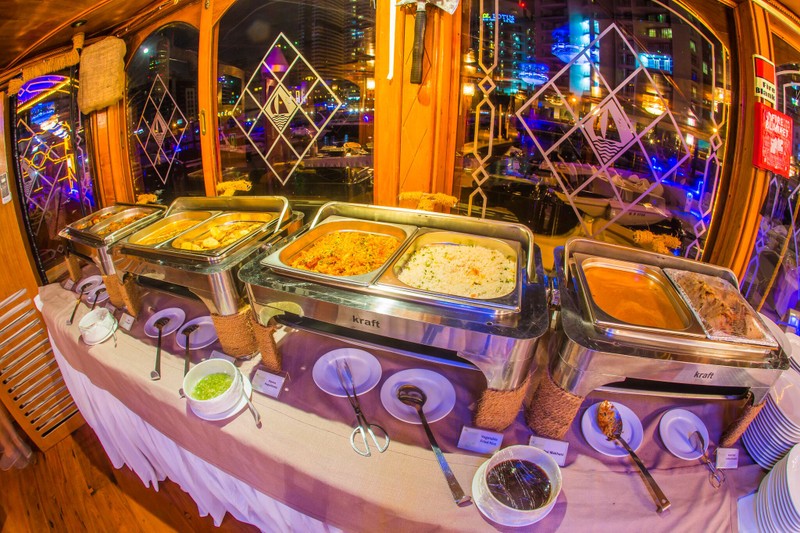 - В стоимость включено: трансфер из отеля на корабль и обратно; ужин (шведский стол); вечернее шоу (танец танура и живой вокал); 2-часовая прогулка по каналу Дубай Марина