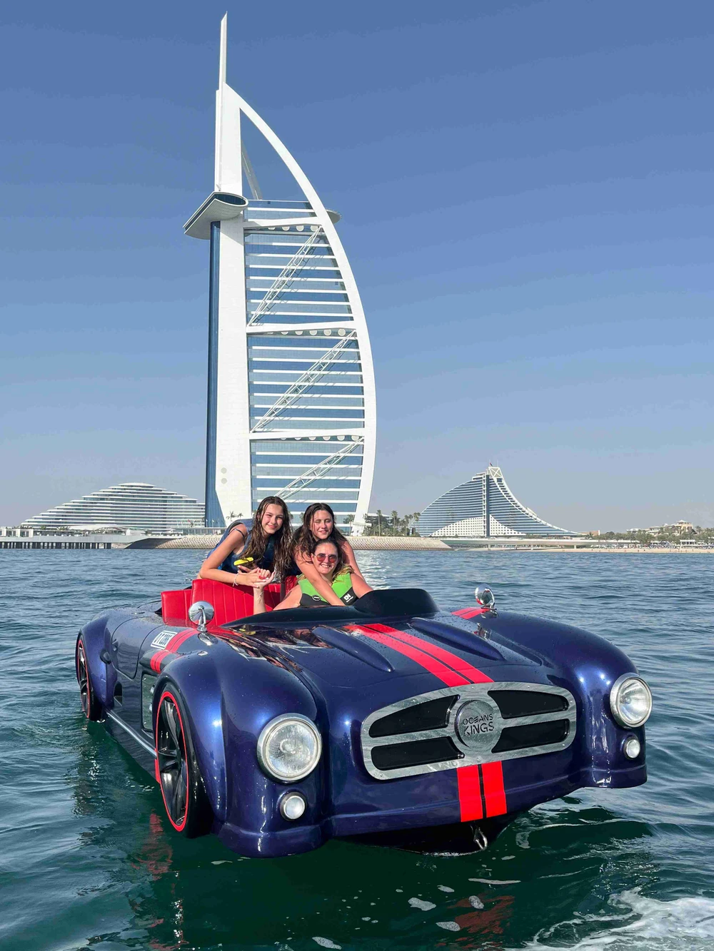 " Отправьтесь в захватывающее приключение по волнам Персидского залива на скоростном автомобиле Jet Car! Рассекайте волны, ловите адреналин и наслаждайтесь видами роскошного городского пейзажа Дубая и его знаменитой достопримечательности — отеля «Парус». "