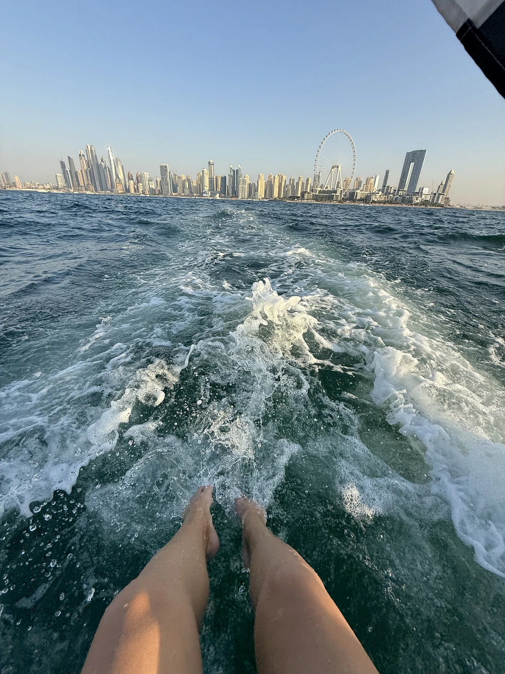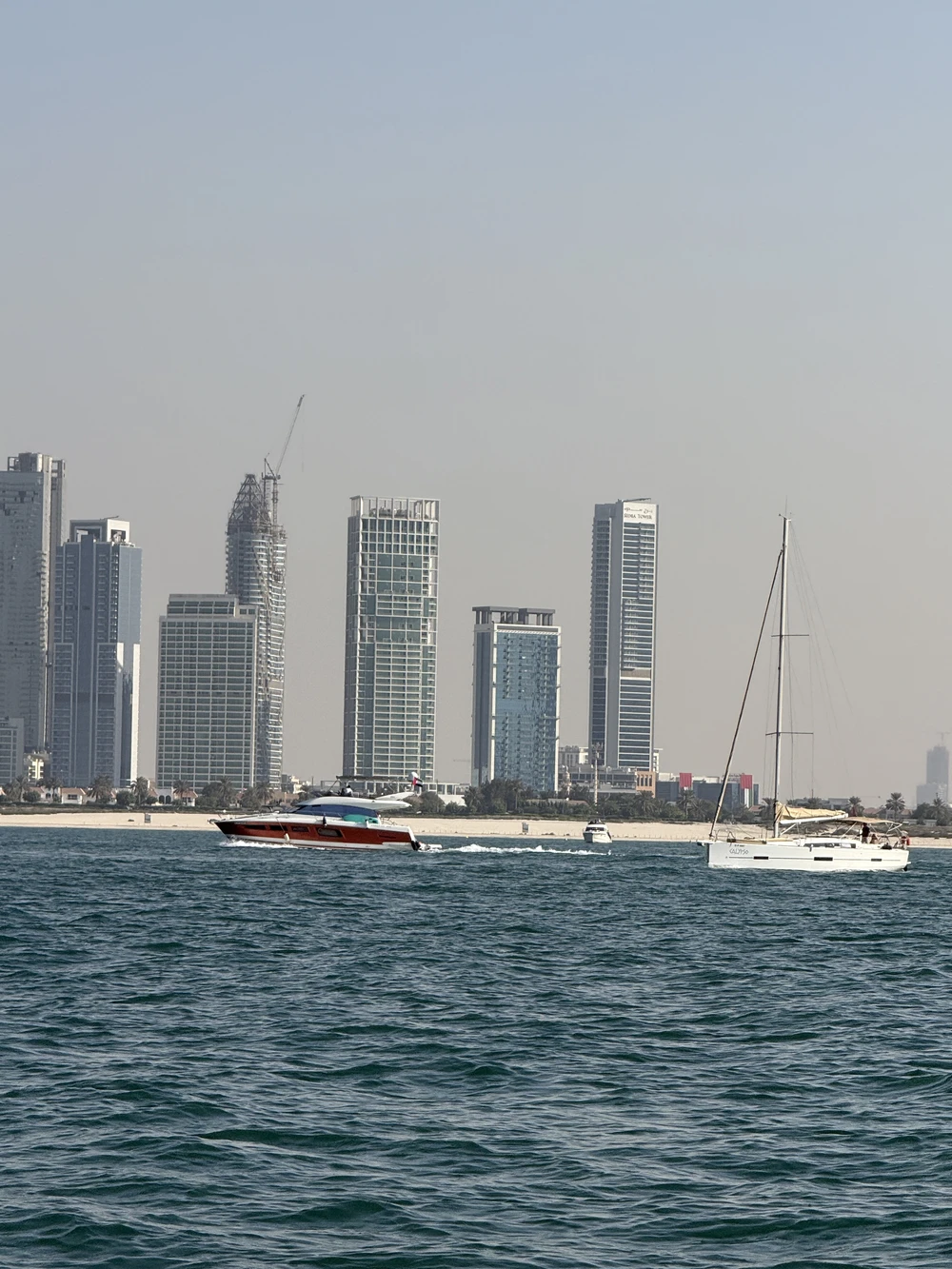 - Выйдем в море из самого сердца Дубая — с Пальмы Джумейра. Вы насладитесь пейзажами вдали от городской суеты, сфотографируетесь на фоне самого большого колеса обозрения в мире «Око Дубая» и побережья Джумейра Бич Резиденс