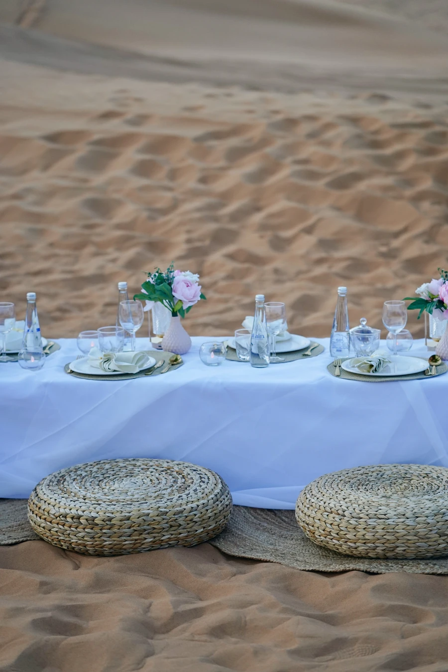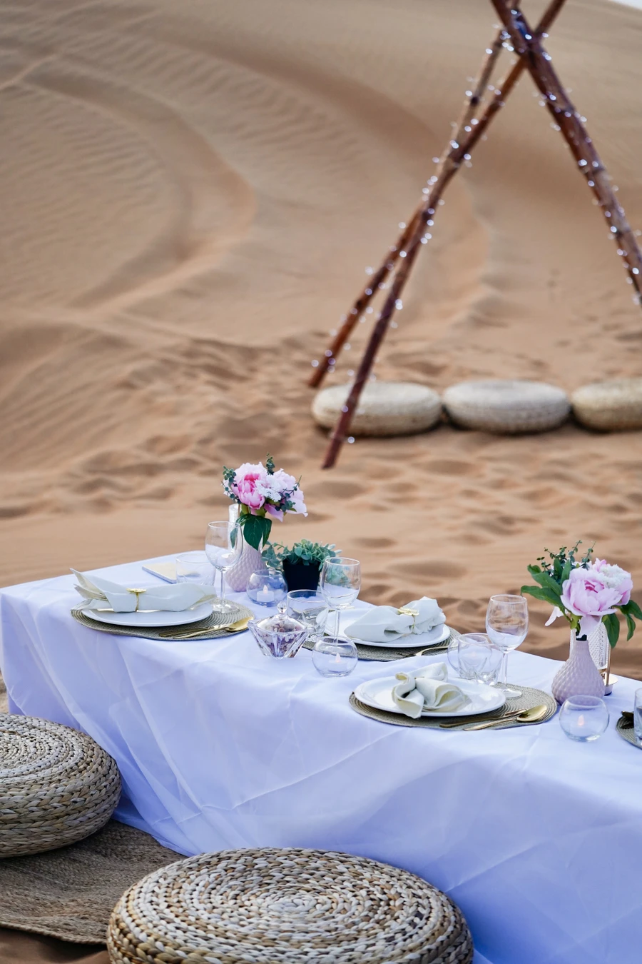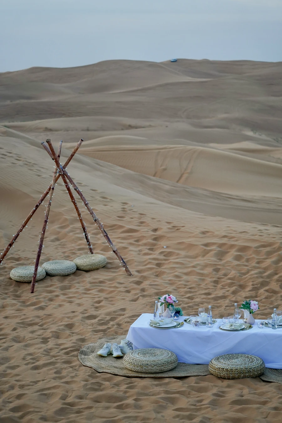 " Вы, ваши родные и близкие, вечер, закат, пустыня, вкусная еда... Как вам такая идея для отдыха? Вы покатаетесь на верблюдах, насладитесь фантастическими пейзажами, поужинаете при свечах в комфортной атмосфере, удобно устроившись на подушках. Не думайте ни о чём — наш специалист обо всём позаботится! "