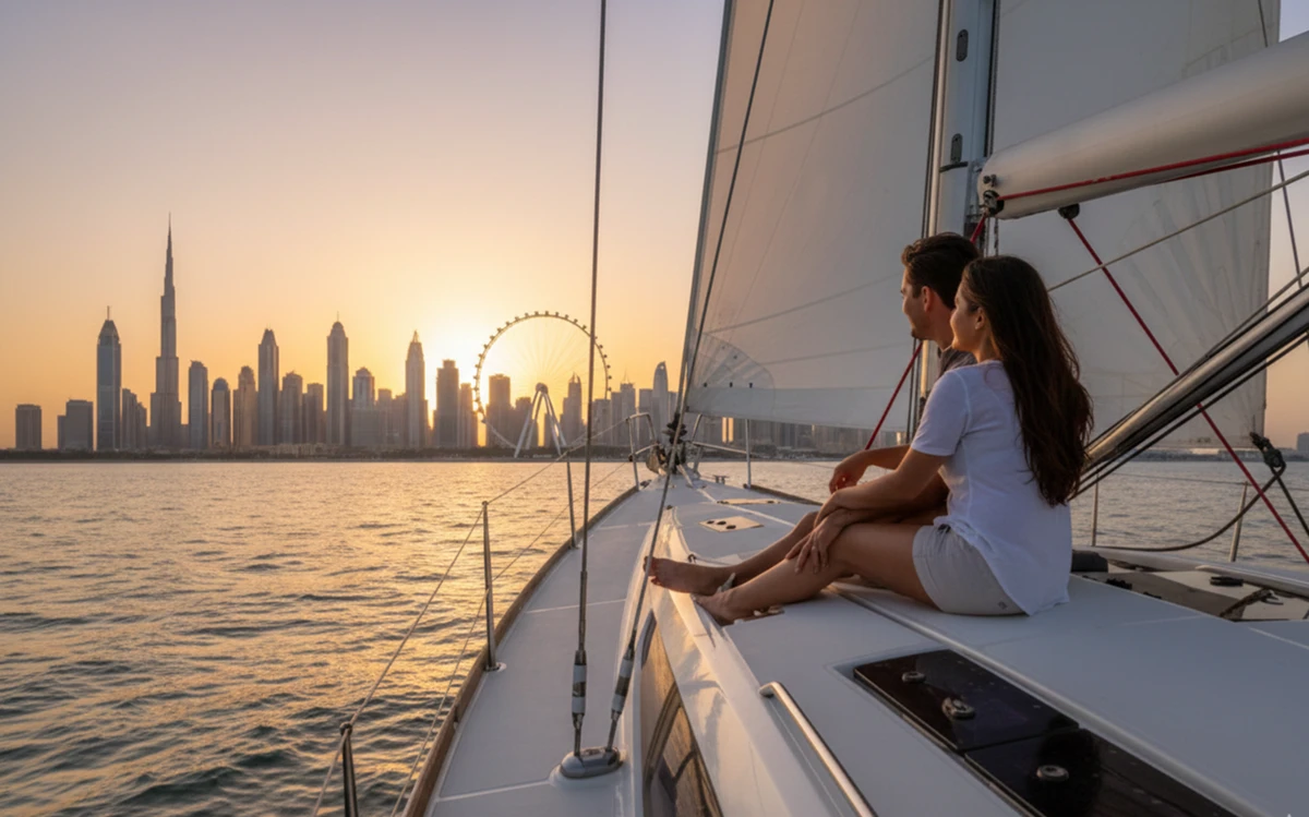 " Чтобы оценить грандиозный размах и футуристическую архитектуру Дубая, мы отойдём от него на парусной яхте. С этого ракурса урбанистические пейзажи искусственного архипелага особенно впечатляют. Наслаждаясь комфортом и тишиной, вы узнаете об истории крупнейшего города ОАЭ, обитателях залива и при желании попробуете свои силы в управлении парусом. "