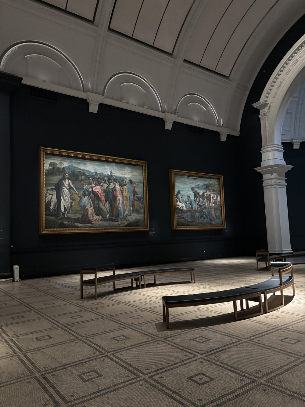 - Особое внимание уделим картонам Рафаэля, заказанным для украшения Сикстинской капеллы. Картоны представлены в V&A, прежде всего, как ранние образцы промышленного дизайна.