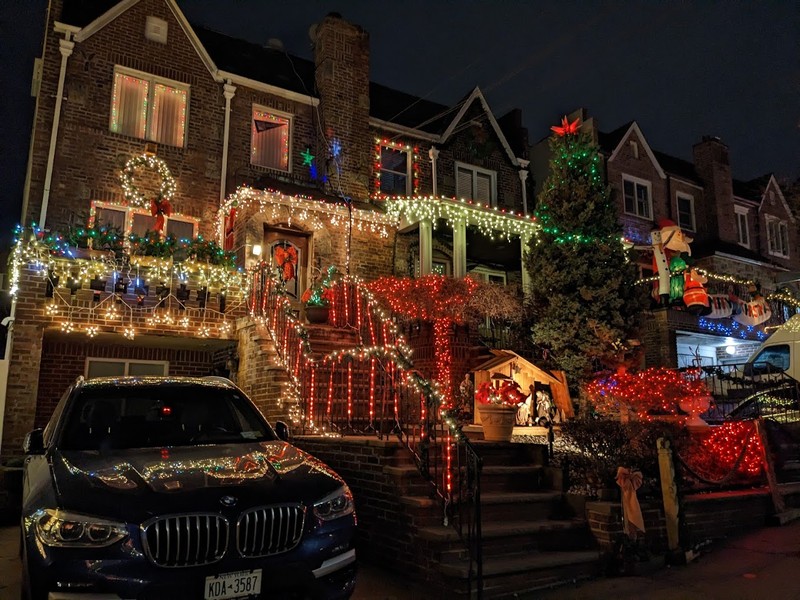 Район Бруклин и его часть Дайкер-хайтс, где состоятельные итальянцы превращают новогоднее украшение домов в искусство: декорируют не только фасады зданий, но и деревья, заборы, крыши, ставят во дворах огромные сияющие фигуры сказочных персонажей в человеческий рост.