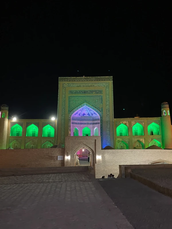 " Вечерняя Хива раскрывается по-новому — крепостные стены, Кальта-Минор и медресе загораются подсветкой и словно оживают. Вы услышите легенды Хорезма, прогуляетесь по сказочным улицам Ичан-Калы и почувствуете очарование Востока без толп и дневной суеты. "