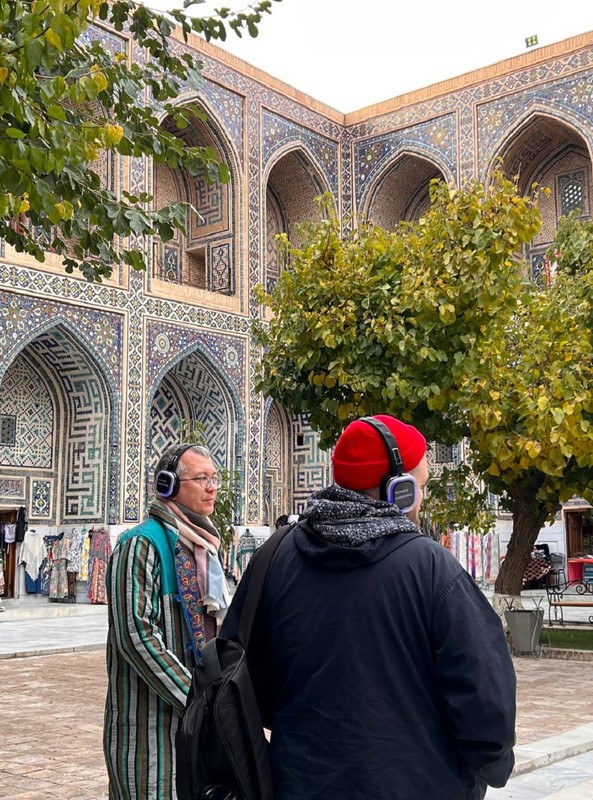 " Приглашаем исследовать Самарканд в современном необычном формате! Надев наушники с 3D звуком, вы попадёте в другую реальность. Виртуальный рассказчик проведёт вас по колоритным старинным улицам и поделится историей своей жизни, неотделимой от истории города. Покажет главные достопримечательности и секретные места. "