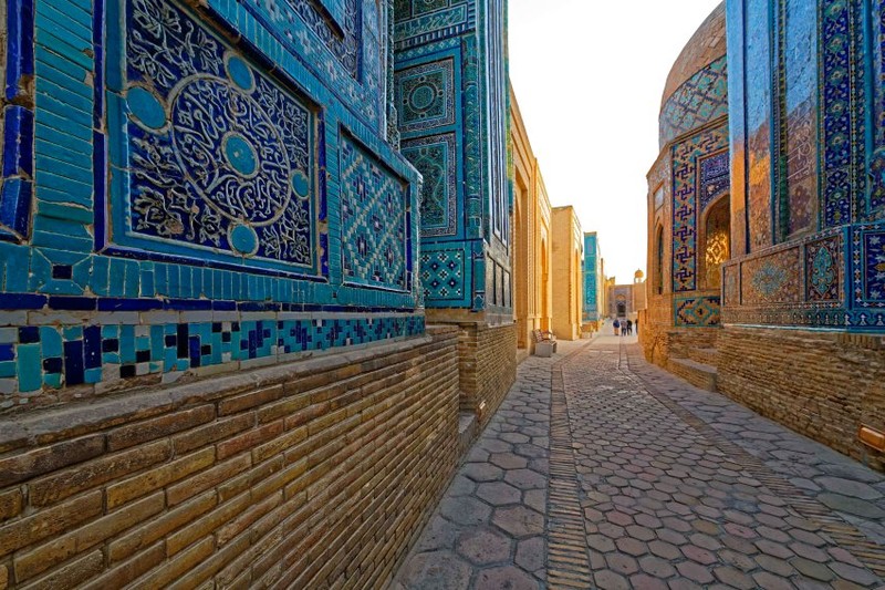 - Шахи Зинда (12-16 века). Один из самых великолепных мемориальных ансамблей на востоке. Место захоронения царственных особ и знати.