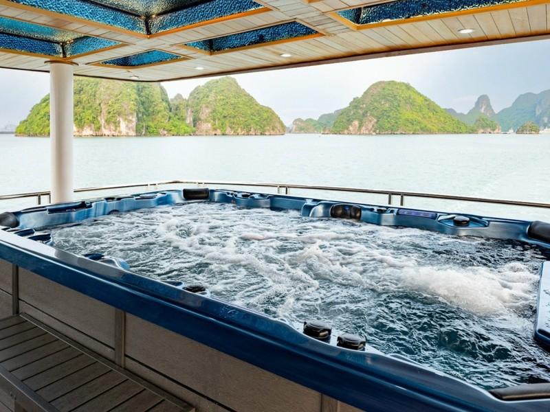 13:30–14:30 — пещера Сунг Сот. Подъём по лесной тропе (около 200 ступеней) и прогулка по самой большой пещере Халонга. Можно остаться на борту и отдыхать