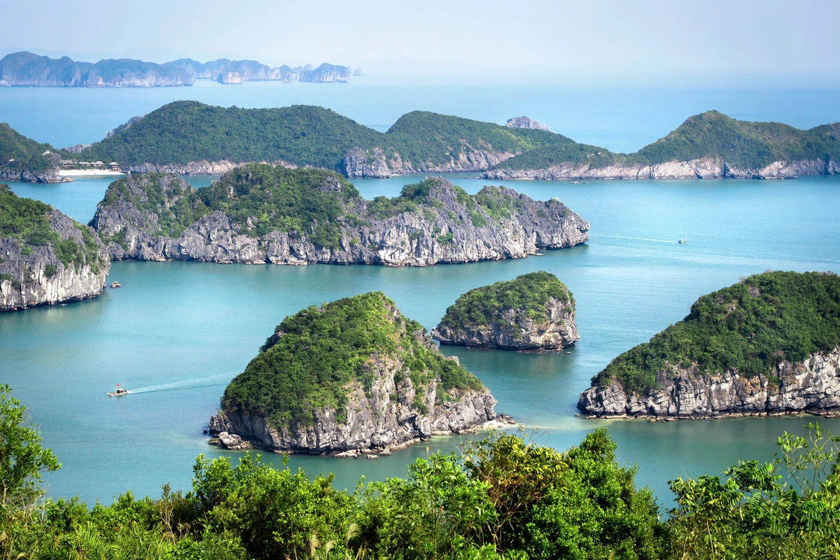" Бухта Халонг — это 3000 островов в изумрудном море, причудливые скалы, древние пещеры, мангровые леса, пресноводные озера и плавучие деревни. Вы отправитесь исследовать ее на современном катамаране или круизной яхте. Насладитесь великолепными пейзажами и запомните этот день надолго. "