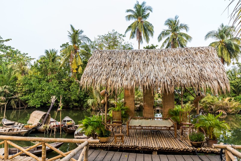 Вы прокатитесь на большом прогулочном моторном корабле мимо живописных островов, плавучих рыбных ферм и домов на сваях. А также остановитесь в местных аутентичных поселениях. В одном производят кокосовые ириски и настойки на змеях, в другом можно проехать на лошадиной повозке, в третьем — попробовать тропические фрукты и медовый чай.