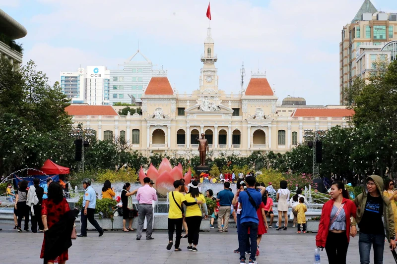 Прогуляемся по центральной улице Нгуен Хюэ и остановимся для фото у памятника Хо Ши Мину перед зданием городского народного комитета.