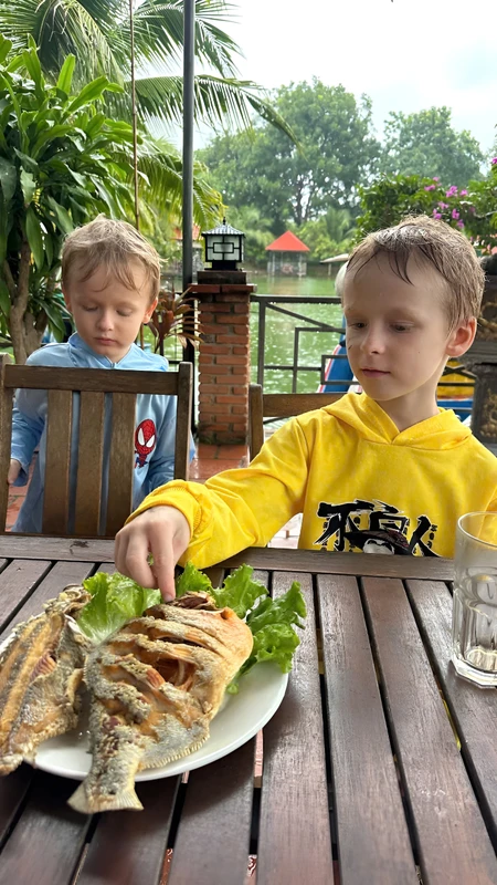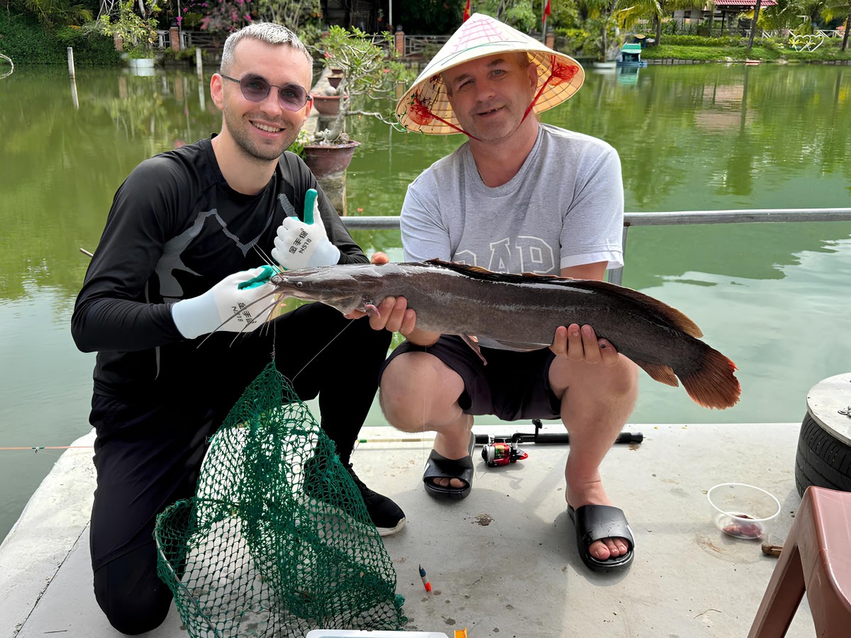" Это не просто поездка или рыбалка — это живой рассказ о стране, людях и природе. По пути вы увидите деревни, плантации фруктов, горные пейзажи, рисовые поля и послушаете о настоящей жизни во Вьетнаме. А на озере научитесь ловить карпов, пираний и змееголовов. Даже если вы никогда не рыбачили, у вас всё получится! "