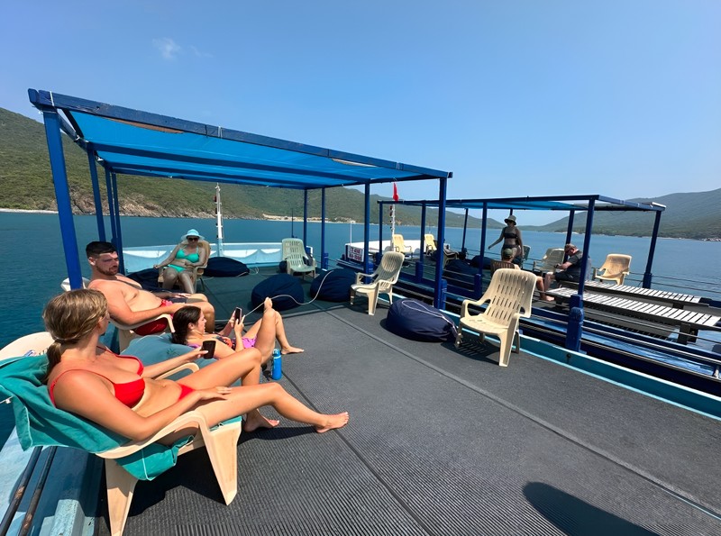 - Отдельно по желанию оплачивается подводная съёмка — $20 с человека. Также на борту можно приобрести напитки