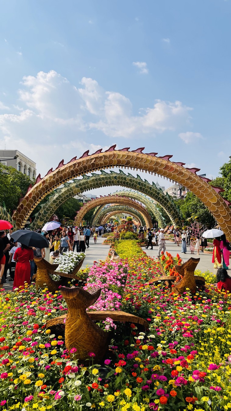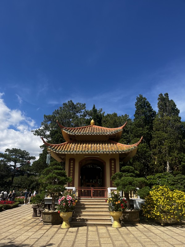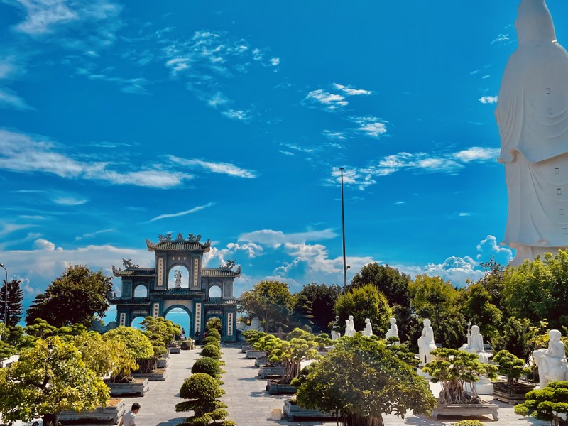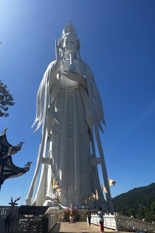 Пагода битого стекла Линь Фуок, на территории которой расположена самая большая цветочная статуя в мире — 17-метровая Гуанинь.